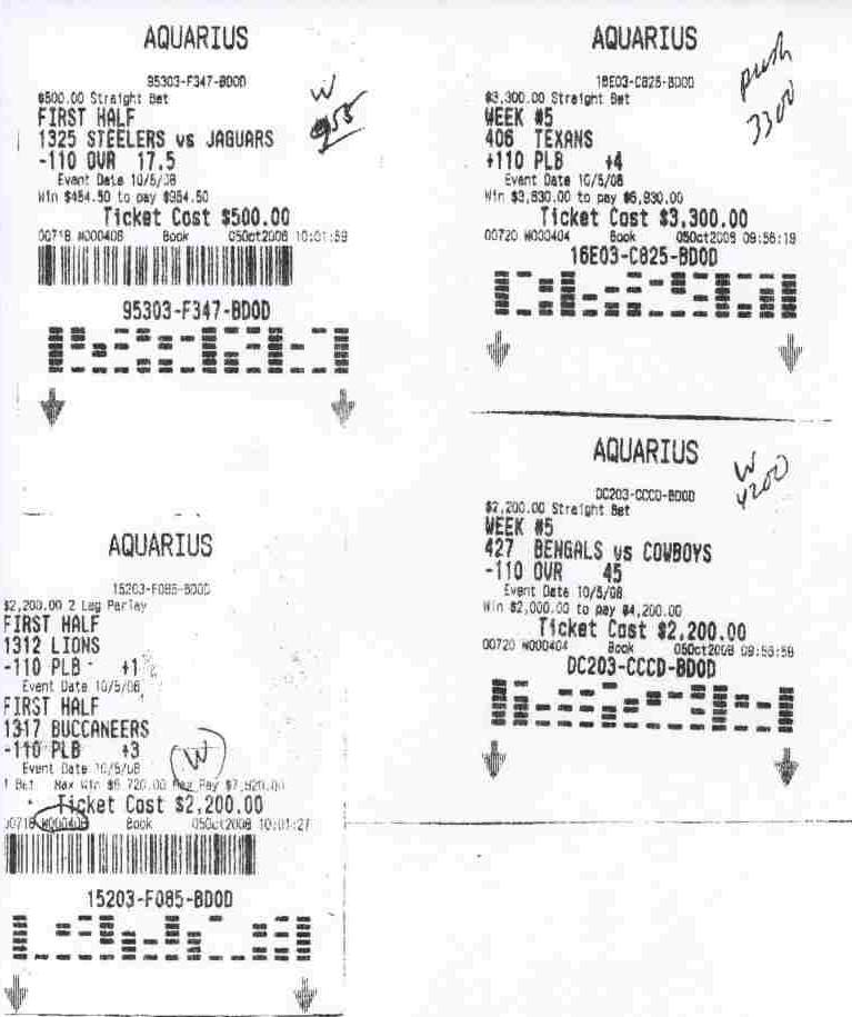 This is the bettor's version of the story. To make a long story short, the bet in question was made just before the game was about to start. When the bettor noticed an error in one the tickets, which was the fault of the writer, he immediately brought it to the attention of the sports book manager. This happened within minutes, perhaps seconds, of the game starting. Instead of voiding the ticket, the manager went into his office and watched the game for 10 minutes. When the opposing team of the disputed bet was about to score, he came out and said he couldn't void the bet, for that reason. For the long version, please visit The Bear Growls.
